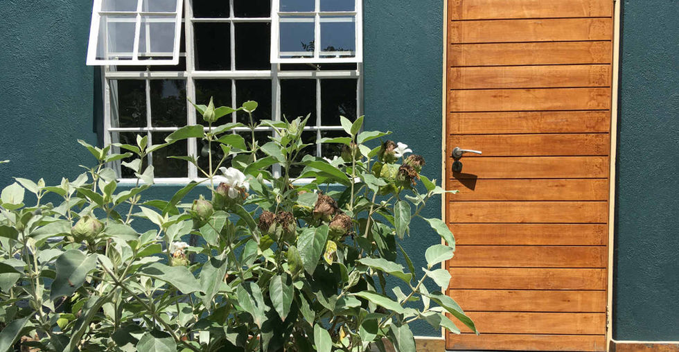 Small ensuite bathroom with shower only. private covered patio includes outdoor furniture and braai stand. Parking is available in front of the unit in the lawn under the large Natal Mahogany tree. Small patio with table & chairs, and braai.